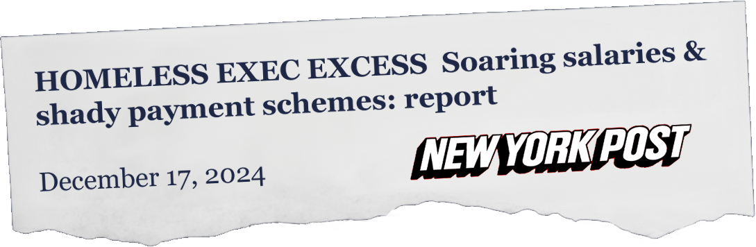 City-funded shelter providers collecting millions of dollars to provide shelter to a near-record number of homeless New Yorkers are rife with nepotism, bloated executive pay and double-dipping,